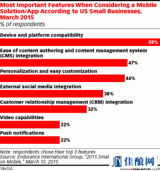 在以上統計中,美國小企業對移動解決方案或APP認為最重要的性能包括7個方面,它們從高到低依次為: