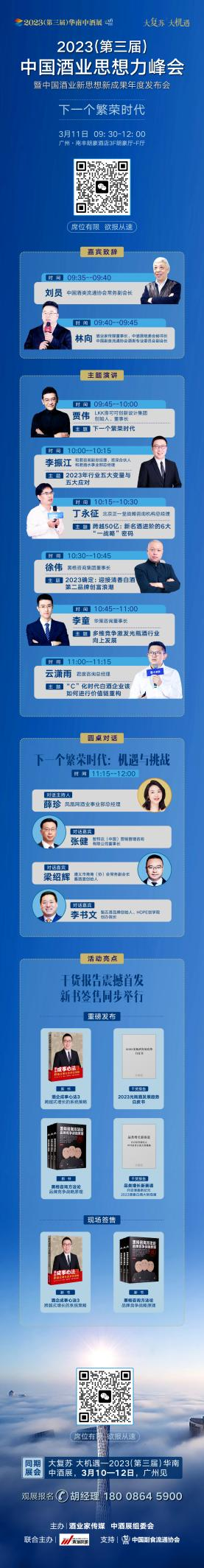 3月9-11日,楊光、權圖、張健、呂咸遜、李童、李振江、張曉麗、徐偉、云瀟雨、丁永征等“酒業最強大腦”齊聚華南中酒展,屆時,他們將圍繞“2023中國酒業發展大勢,2023中國醬酒產業發展趨勢,清香發展趨勢,光瓶酒發展趨勢”等多個話題,以權威數據、真實案例、專業分析,帶領酒業人把握住行業發展大勢。