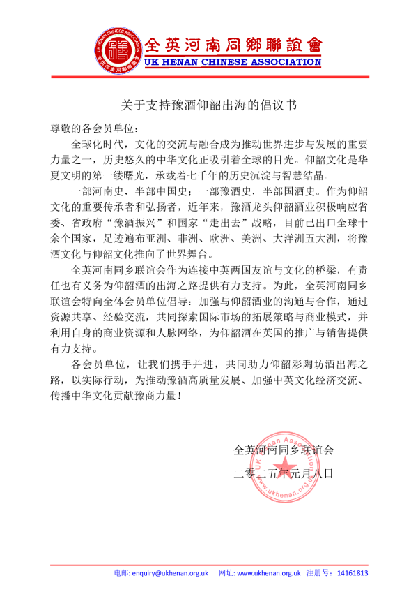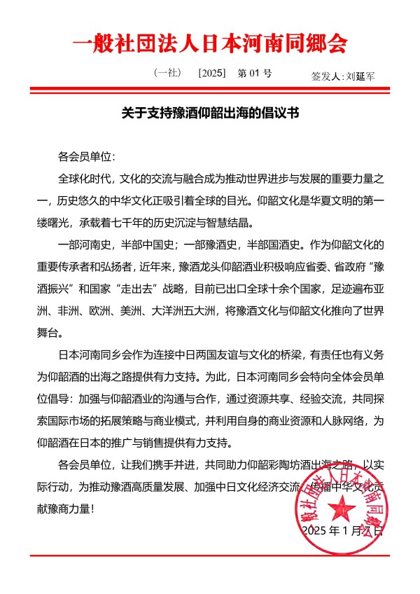 近日,正值首個“非遺年”到來之際,美國、加拿大、英國、法國、新加坡、尼日利亞、塞爾維亞等25個海外僑團,公開發(fā)布倡議書,支持豫酒仰韶出海。