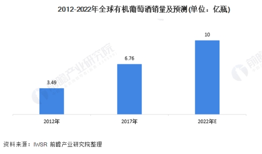 受益于中國葡萄酒消費者對于有機葡萄酒的認可,中國葡萄酒行業市場規模呈現持續增長的態勢。根據國際葡萄酒及烈酒研究所IWSR發布的研究數據顯示,2022年,有機葡萄酒的全球銷量將增加到10億瓶,幾乎是2012年3.49億瓶銷售量的三倍。