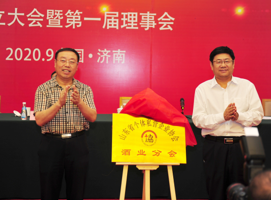 會議最后,進行了隆重的揭牌儀式,由山東省政協常委、原山東省委統戰部常務副部長趙強、濟南市市場監督管理局局長王建森為山東省個體私營企業協會酒業分會成立揭牌,標志著山東省首個省級專業服務酒商的酒類專業組織正式成立。