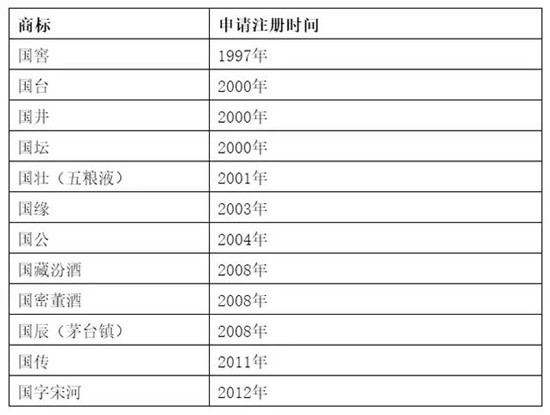 “國酒”雖然走了,但以“國”字領頭的白酒品牌或產品在白酒業正方興未艾。最早的是瀘州老窖集團的“國窖”,在1997年就注冊了該商標,第二年即獲準通過。當然不是所有的“國”字號商標申請都這么順利。另外需要注意的是,商標注冊時間和市場推廣不一定吻合,比如國井商標在2000年就注冊了,但企業真正大力推廣只是在最近幾年。