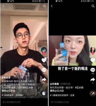 最近,每天下班回家照例躺尸刷抖音時,又經常會刷到帶有“#江小白混飲”話題的視頻,“好滴多仔”、“崩壞姐妹”、“伏拉夫”之類的大V博主竟然都愛上了用江小白來調混飲,在這些大V的啟發下,還冒出了許多普通素人用江小白混飲搞創作的視頻,加旺仔牛奶的、加雪碧的、加冰紅茶的、加水果的什么都有,好不熱鬧。