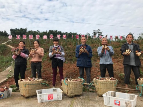 朱奎到青山巖村后,看著貧困的群眾心急如焚,馬不停蹄地開始走訪、調研,尋找發展出路。他不僅定點開展全覆蓋入戶幫扶,還帶領當地群眾因地制宜地建立了“五糧液青山巖竹林(苗圃)產業示范基地”,又引入當地園林公司和竹蓀野珍蔬菜成立合作社,開發出林下竹蓀、赤松茸等高經濟價值菌類,將當地竹、石元素結合開發出“竹石盆景”,整合現有黑豬、土雞等產業,形成了“竹業為主,擴展多元”的發展模式。“輸血”又“造血”,讓群眾不但脫了貧,還趟出了一條致富之路。