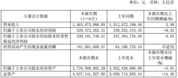 8月18日,迎駕貢酒公布半年報,顯示,今年上半年迎駕貢酒實現營業收入15.64億元,同比增3.4%;凈利潤3.29億,同比減少0.32%。