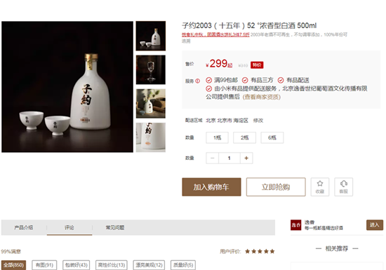 中秋節前夕是白酒銷售的旺季,對品牌方而言,是一場沒有硝煙的戰爭。從小米有品的榜單來看,不論是子約2003,還是子約,無疑都贏得相當漂亮。面對飛天茅臺、茅臺王子、賴茅等產品的競爭,子約銷售依舊火爆,離不開“高顏值、高品質、高性價比”的卓越品質,也離不開有品用戶對子約的青睞。據資料顯示,子約與子約2003用戶滿意率近100%,產品復購率極高。