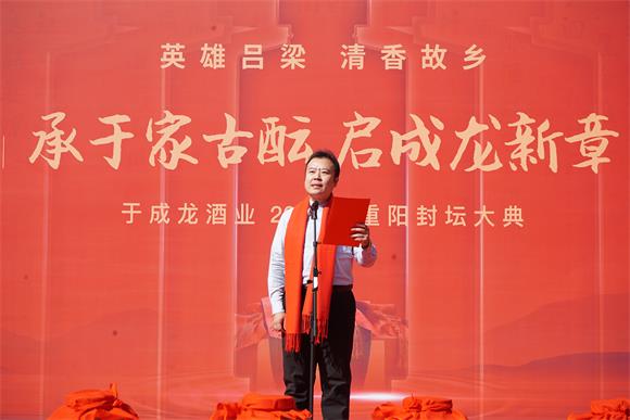 封壇大典主持人于成龍酒業(yè)董事長(zhǎng)王斌致開(kāi)幕詞