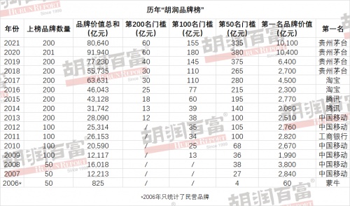 胡潤研究院結(jié)合了公開經(jīng)濟數(shù)據(jù)和對消費者的調(diào)研結(jié)果進行品牌價值綜合評估。
