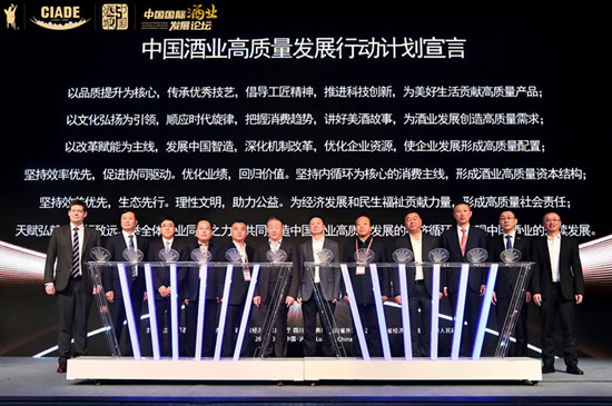 本屆論壇上,中國酒業(yè)協(xié)會聯(lián)合重點(diǎn)產(chǎn)區(qū)和重點(diǎn)酒企,共同發(fā)起中國酒業(yè)高質(zhì)量發(fā)展行動計(jì)劃,從品質(zhì)提升、文化弘揚(yáng)、改革賦權(quán)等、效益效率、公益民生方面,倡導(dǎo)全行業(yè)共同攜手,實(shí)現(xiàn)酒業(yè)的健康發(fā)展,為社會經(jīng)濟(jì)發(fā)展和民生福祉作出更大貢獻(xiàn)。