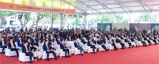 最后,在全場觀眾的見證下,宋書玉、吳登芬、周和平、王庚年、王喆、劉斌、譚志桂、魏偉、李永偉、魯文革、李慶榮、呂偉剛、田軍、王濤、李建國、丁如興、徐軍、何勇、魯霞光、錢林江等領導和嘉賓登臺,共同為2024中國國際黃酒產業博覽會暨黃酒嘉年開幕!
