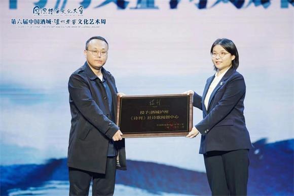 開幕式上,中國作家協(xié)會《詩刊》社為酒城瀘州頒發(fā)“《詩刊》社詩歌閱創(chuàng)中心”牌