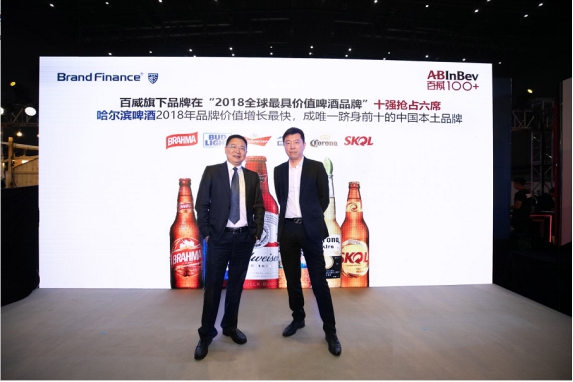 (哈爾濱啤酒成為“2018全球最具價(jià)值啤酒品牌”唯一躋身前十的中國本土品牌,百威亞太區(qū)副總裁王仁榮在會(huì)上向中國酒業(yè)協(xié)會(huì)常務(wù)副秘書長(zhǎng)兼啤酒分會(huì)秘書長(zhǎng)何勇分享了這一喜訊)