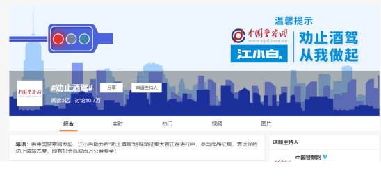 此后,雙方互動緊密。8月30日,中國警察網在微博、抖音等社交平臺發起“勸止酒駕”公益短視頻大賽,江小白作為協助單位一起倡導勸止酒駕。該活動不僅吸引了全國各地上百家公安新媒體賬號紛紛錄制短視頻參與互動,也因為故事、段子等生動、鮮活的內容達到多次傳播,向更多年輕人呼吁開車不酒駕,理性飲酒。目前,僅在抖音,網友們自發創作的勸止酒駕視頻內容已達2萬個,播放量達8億次。