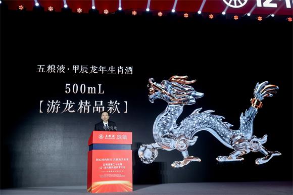 此外,在本次大會現場,五糧液還正式發布了五糧液·甲辰龍年生肖酒。中國白酒大師、五糧液股份公司技術總顧問趙東對該生肖酒內涵文化、極致工藝、匠心品質、尊享價值等進行了闡釋。相信這款象征著中華圖騰和蘊含著中華民族優秀傳統文化的匠心之作,在為文創白酒市場帶來驚喜的同時,也必將為經銷商創造新的增量和贏得消費者的喜愛和認可。