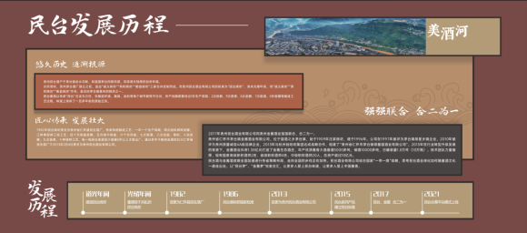 在中國傳統文化里,醬香白酒的故事貫穿于千年歷史當中,宴席、節日、聚會、交友等都會帶有醬酒的影子,而貴州省茅臺鎮作為享譽世界的醬酒產業重要基地,有著悠久的文化底蘊和深厚的歷史淵源,多家知名的酒企在此歷經百年滄桑,是醬酒文化的重要組成部分,其中就包括民臺酒業,通過百年來不斷地發展和創新,構筑出強大的品牌實力和文化積淀。