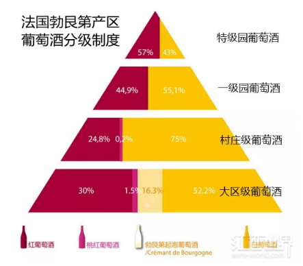 對風土的重視使勃艮第“以地為本”,制定了有別于波爾多(Bordeaux)的分級制度。在勃艮第,土地被分為4個等級,即大區級(Regionale)、村莊級(Village)、一級園(Premier Cru)和特級園(Grand Cru)。