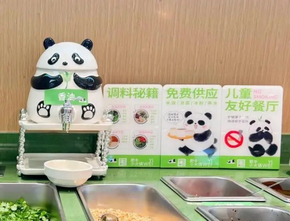 一圍肥牛小火鍋的熊貓造型香油瓶