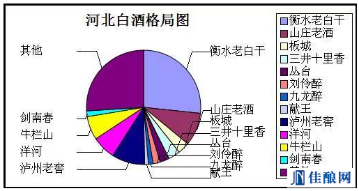 河北市場(chǎng)是個(gè)包容性比較強(qiáng)的市場(chǎng),150個(gè)億的市場(chǎng)容量中,外來(lái)品牌的地位舉足輕重,且不論茅臺(tái)、五糧液、國(guó)窖1573這些高端產(chǎn)品,僅瀘州老窖每年就要拿走10多億的銷(xiāo)售額(其中保定唐山各4億,石家莊近2億,以及廊坊、張家口等地也很可觀);洋河切掉近10億的市場(chǎng)份額;牛欄山二鍋頭又虹吸10個(gè)億;再加之劍南春、郎酒、汾酒、龍江家園、老村長(zhǎng)、西鳳酒、迎駕、古井、今世緣等等從幾億到幾千萬(wàn)的銷(xiāo)量,外來(lái)品牌約占了河北省三分之一的份額。