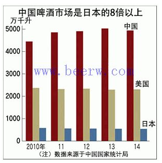 中國啤酒市場十多年來一直穩居世界第一,市場規模是排名第二的美國的2倍,日本的8倍以上。但中國國家統計局發布數據顯示,2014年國內啤酒市場產量約4939萬千升,同比下降約1.8%,自統計局1998年開始統計該項數據以來,首次出現負增長。據調查公司統計,2015年1~6月的產量同比減少6.2%,下滑趨勢不變。