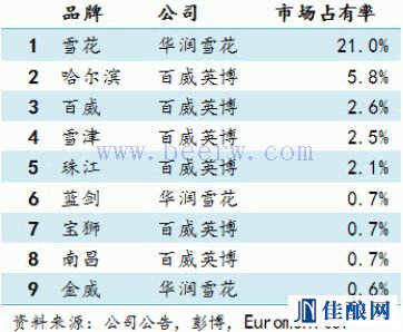 表2:百威英博及南非米勒持有的主要中國品牌市占率