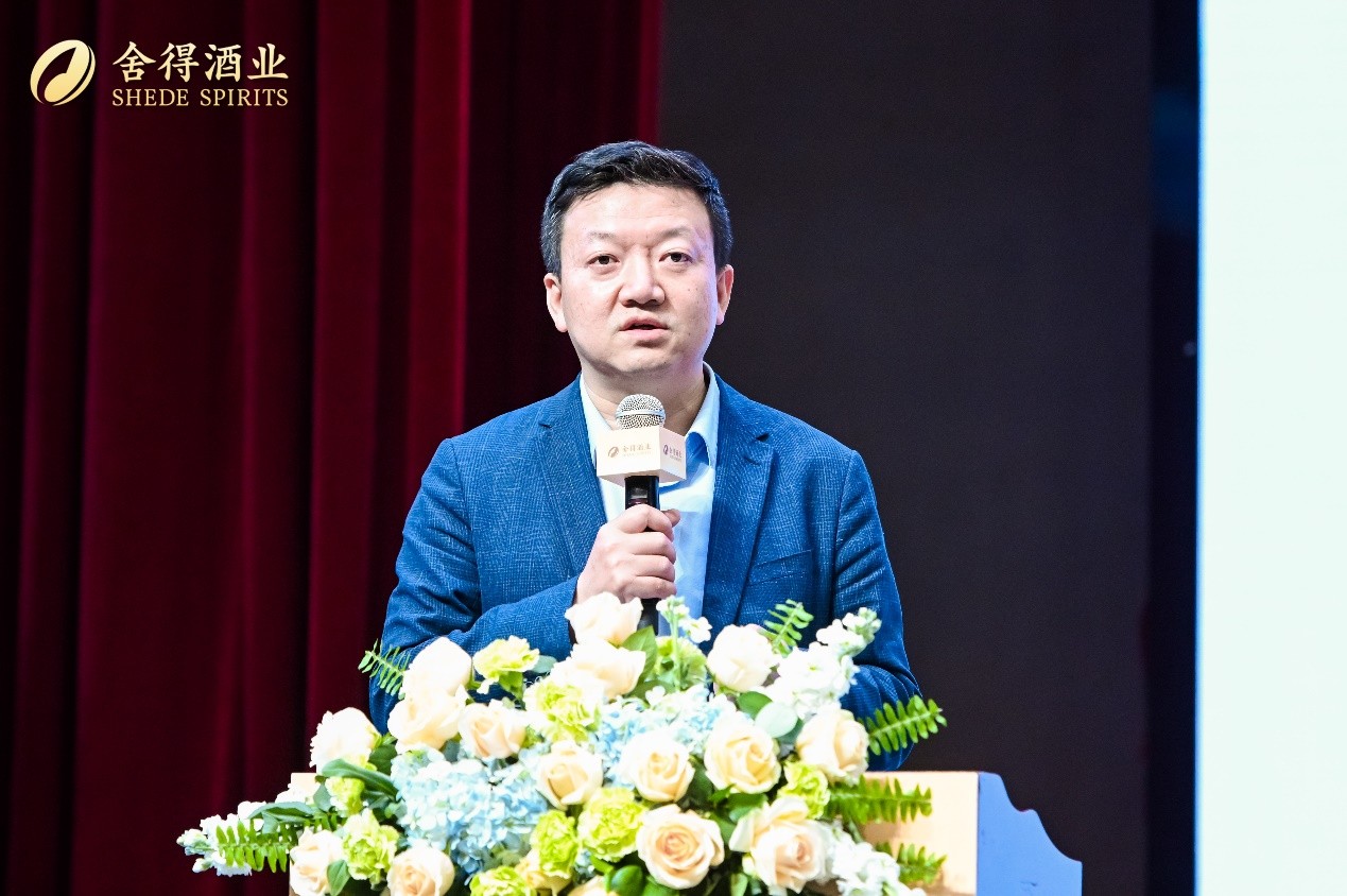 會議現場,蒲吉洲代表舍得酒業對到訪嘉賓表示熱烈歡迎。他系統地闡述老酒戰略的核心內涵,并介紹近年來舍得酒業取得的突破成果。