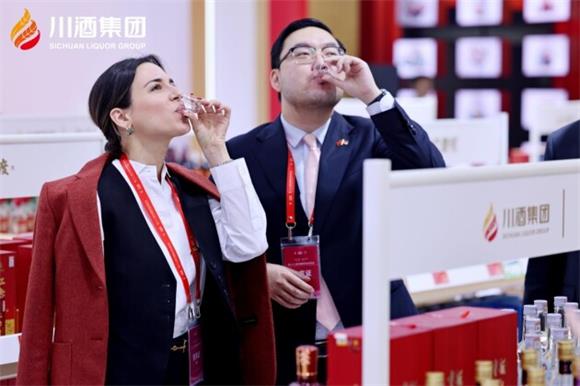 在展廳柔和的燈光下,一瓶瓶佳釀如珍寶般精致陳列,靜訴著酒文化的深厚底蘊,蘊藏著歲月的沉淀以及對品質的追求,川酒集團化身“美酒搭子”,深化沉浸式逛展體驗。