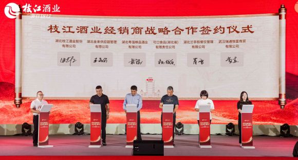 到了4月,枝江酒業開始陸續對外透露已經出現多個百萬、200萬、300萬大單。而在此次活動中,枝江酒業與湖北金來供應鏈管理有限公司、湖北粵強樽品酒業有限公司、可口食品(湖北省)有限責任公司、湖北蘭亭敘餐飲管理有限公司、武漢瑞通恒富商貿有限公司等五家大商簽訂合作協議,共同為消費者帶去更高品質、更好風味、更具性價比的枝江好酒。