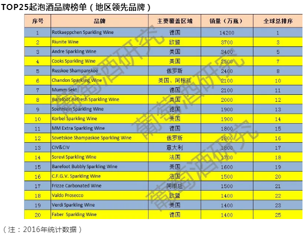 值得一提的是,若漢凱與菲斯奈特分別獨立統計,本榜單的銷量冠軍為德國Rotkaeppchen公司,旗下產品基本只在德國本土銷售,產品售價較為低廉,漢凱與菲斯奈特則分列第二和第三位。