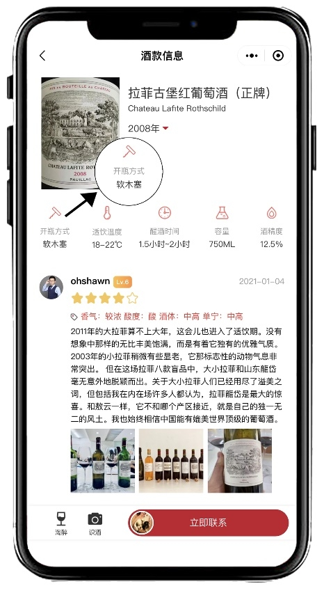 有鑒于此,葡萄牙軟木協會自去年11月起與中國葡萄酒數據信息平臺酒咔嚓(9KaCha)攜手開展了一項從側面普及軟木美酒的工作。根據這個合作計劃,依托于酒咔嚓強大的380萬款酒類數據庫,當其830多萬用戶通過酒咔嚓app、小程序和網站查詢一瓶葡萄酒的資料信息時,除了酒莊、葡萄品種、產區、葡萄酒類型、酒精度等基本信息,現在也可以得悉其“開瓶方式”,即其所用的封瓶材質。
