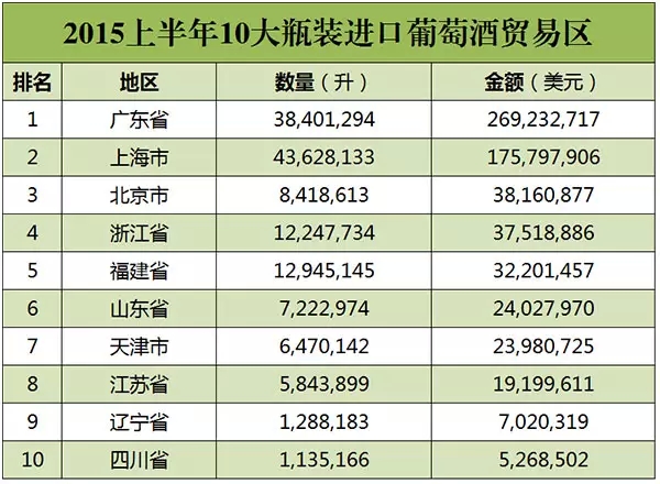 (6)從貿(mào)易區(qū)域來(lái)看,依舊以北上廣等沿海城市為主流進(jìn)口葡萄酒貿(mào)易區(qū)域。