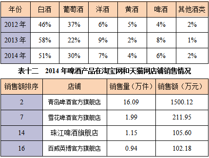表十一 2012年~2014年酒類產(chǎn)品在淘寶網(wǎng)和天貓網(wǎng)銷售額所占例