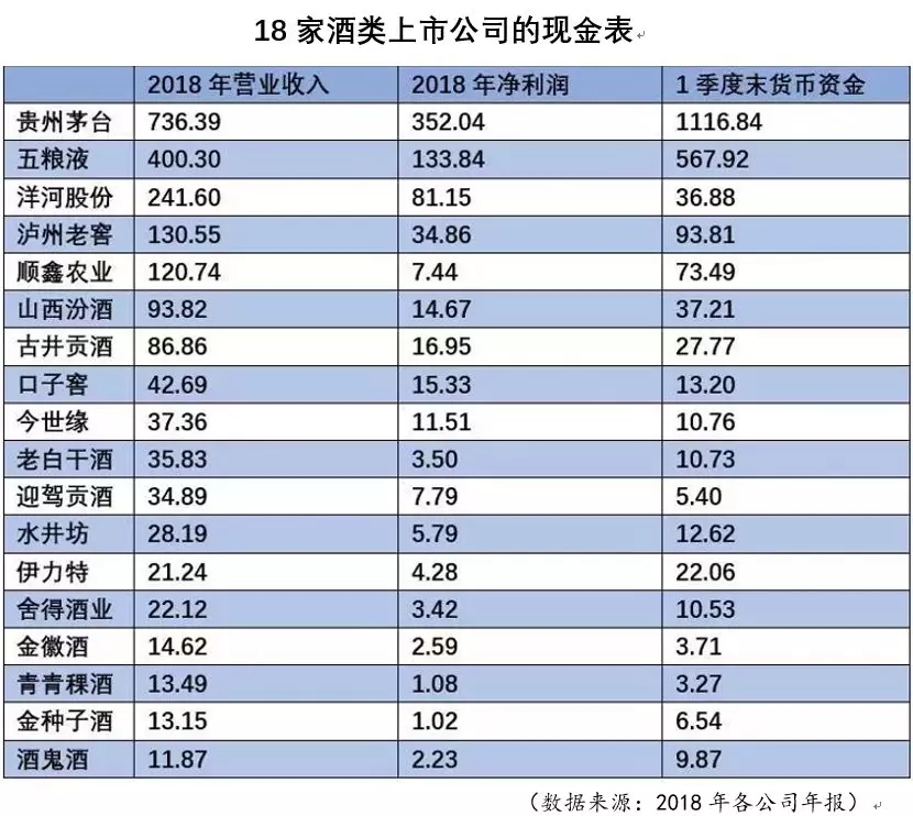 然而,在挺過“調整期”,白酒行業迎來三連漲之后,這些手握巨額現金的白酒巨頭們,卻與巴菲特的信條反其道而行之。截止2019年1季度18家白酒上市公司的貨幣資金余額2063億元,由于錢實在太多,18家白酒上市公司全部派發現金分紅,合計擬派發364億元。其中,分紅最多的還是茅臺,2018年貴州茅臺的分紅金額高達145.39億元。