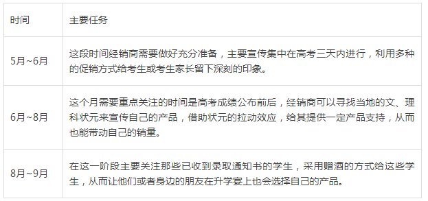 8.流程與時間節(jié)點難以把控。白酒企業(yè)及經(jīng)銷商幾乎年年都在做升學宴及謝師宴,但是很多白酒廠家及經(jīng)銷商感覺年年效果都不是太理想。其實升學宴或者畢業(yè)宴不是簡簡單單出一個活動政策,做個促銷就行了的。要弄明白你活動政策是針對哪些人哪個群體的?你要弄明白這些人每天接觸的是什么?你要弄明白什么才是這樣的群體所需要的?你要弄明白到底是產(chǎn)品的問題還是流程的問題?其實當你弄明白這些問題的時候就是你成功的時候。