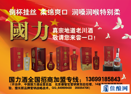 這就要說到軟實(shí)力了,這就得通過我們獨(dú)特的營(yíng)銷手段來推廣。我的目標(biāo)就是先讓大家都來嘗一嘗,品一品,我相信,10個(gè)嘗過的人,9個(gè)會(huì)舉起大拇指,說這個(gè)酒“還是不錯(cuò)的”,這不是我說大話,就是實(shí)際的情況,咱老百姓最樸實(shí),更認(rèn)酒質(zhì),誰不想喝上好酒啊,國力酒正好滿足,喝著這樣的酒,感受祖國的強(qiáng)大,社會(huì)風(fēng)氣的好轉(zhuǎn),喝出心中的自豪,肯定別有一樣感受,越喝越自豪嘛!所以,我也把國力定位于“國家強(qiáng)大的沖喜酒”,也是每個(gè)家庭吉祥,幸福的沖喜酒!!